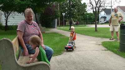 Since the boys were alert and full of energy, we then headed straight to the hospital to surprise Nanny. Grandpa and Grandma showed up minutes later--they'd passed us on their way home--and thankfully, we had the visitors' room to ourselves for a long, proper stay.
